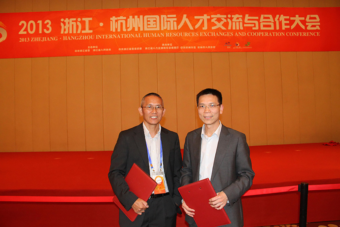 11月6日,2013浙江·杭州国际人才交流与合作大会在钱江新城隆重召开。我公司与美国金氏环保公司合作协议,作为全市三十个合作项目之一,也是上城区唯一的项目,在大会上签订。常务副总经理王卫民代表ng电子游戏公司与金氏环保公司董事长金博士在签约仪式上交换了合作协议,浙江省组织部副部长、省委人才办主任姚志文等省市领导见证了这一时刻。