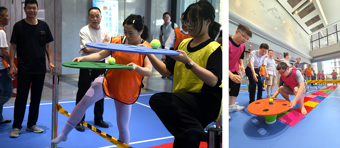 这是一项平衡能力与速度的比拼,每位选手你追我赶,现场气氛热烈,助威声此起彼伏。