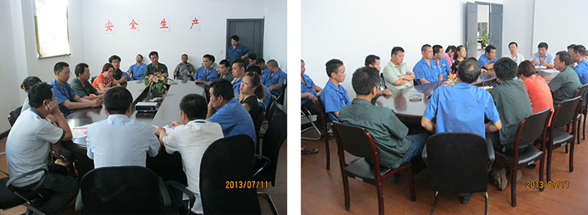 大会由总经理朱熙主持,孙向南、施德龙和李穆艺分别发言,主要就车间生产中的用电安全,操作过程中的安全问题,防火意识和防暑措施等作了详细说明和交流。车间全体员工积极参与,畅所欲言,提出很多可行性建议。大会上还提出了公司安全生产标语:安全生产,人人有责;安全第一,预防为主。希望车间工人在生产工作中要时时注意自身安全和身体健康,同时公司也为员工备好了常用药品,员工可以自行领取,及时预防。