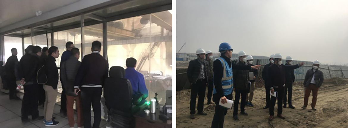 走出电厂,代表们又参观了土壤污染修复项目,详细了解了整个项目的背景、状态、技术及修复进展,并参观了现场的施工大棚和臭气处理及污水处理设备。