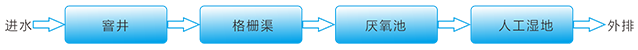 “厌氧+人工湿地”处理技术工艺流程如下: